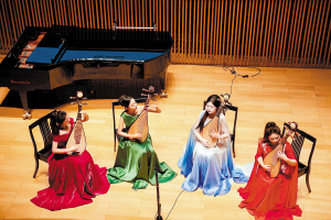 王雅君先上演独奏《诉——读唐诗〈琵琶行〉有感》,后与张嘉祺、来佳莹联袂奏响《品》,节奏感十足,旋律灵动多变,展现出弹拨乐器合鸣的独特魅力。王雅君、张嘉祺、来佳莹、张艺佳四位青年演奏者合作的《梦入江南》,将江南水乡的温柔旖旎娓娓道来。