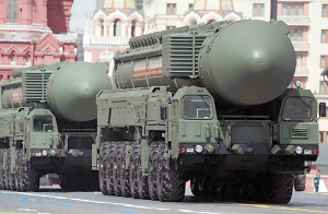▲5月9日在俄罗斯首都莫斯科举行的纪念苏联伟大卫国战争胜利80周年阅兵式上拍摄的洲际弹道导弹。