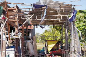 这是12月20日在柬埔寨奥多棉吉省拍摄的在冲突中受损的房屋。