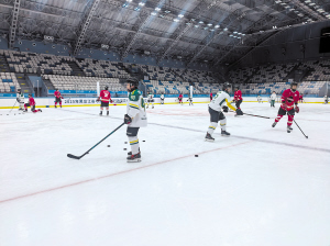 两地教练员、运动员开展联合训练。 本报讯(记者 张堃雷文/摄)近日,黑龙江省与澳门特别行政区花样滑冰与冰球交流活动在哈尔滨冰球馆火热展开,来自澳门的27名冰球和花样滑冰项目的教练员、运动员与冰城少年一同合练,共同交流进步。