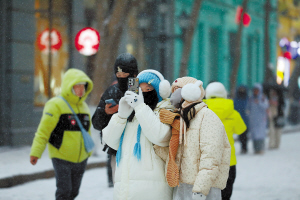 12月23日,一场降雪将哈尔滨装点成银装素裹的童话世界,为国内外游客带来无限欣喜。他们或悠闲地在雪中漫步,或用镜头定格美景,畅享冬日浪漫。