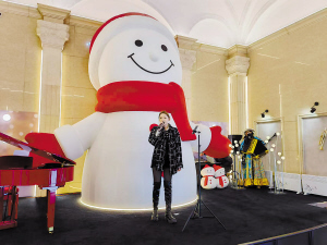 冬日冰城,乐暖人心。 本报讯(张加勋 记者 刘姝媛文/摄)12月25日14时,位于哈尔滨音乐公园长廊的雪人音乐厅正式启幕,为冰雪季的松花江畔再添文化新地标。