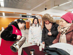 志愿者为游客准备了热饮。 本报讯(徐晓龙 记者 梁可心文/摄)“从地铁站出来就有人细心指路,排队时还能领到热贴御寒,哈尔滨人真的太暖了!”12月26日,在侵华日军第七三一部队罪证陈列馆前,一位游客握着志愿者递来的暖贴,感动地说。