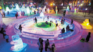 园内最先亮灯的《骏马风清》景观处,满含中国元素的门楼、拱桥,以及景观中每一处马造型冰雕,都吸引了大批游人前来打卡拍照。(下转第六版)