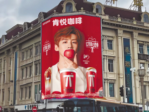 与代言人白敬亭的合作就是一大范例。2025年年初,肯悦咖啡就前瞻性地与白敬亭主演的青春剧《难哄》合作,《难哄》大火,肯悦咖啡也随之收获了一批粉丝;近日,白敬亭手捧肯悦经典红苹果热美式的巨幅广告形象出现在许多城市的经典地标,偶像与经典产品的形象也一同深入人心。