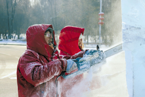 来自俄罗斯的3个专业冰雕团队与国内黑龙江、新疆等多地艺术家同台竞技,成为本次赛事一大亮点。不同文化背景的艺术家在统一规格的冰体前各显神通,冰铲与冰面碰撞的清脆声响,在平房公园和松花路转盘道两个比赛现场此起彼伏。