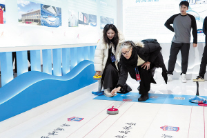 在冰雪互动体验区,冰壶、冰盘和冰球射门体验内,来自全世界各地的游客和参展商玩得不亦乐乎,这里也成了展馆内人气最高的区域之一。奥禹冰壶运动中心竞赛活动经理谭恩飞介绍,作为龙江冰雪体育企业中的龙头,奥禹冰壶曾参与过包括深圳文博会、首届东北亚创博会等众多展会,每次都会吸引众多观展游客前来上手体验。“我们希望把冰雪在哈尔滨的热度传递给全国的体育爱好者,让他们以更直观的方式亲身参与到冰雪运动中。”