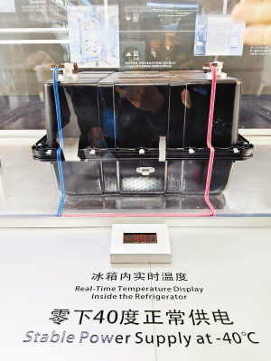 展会现场展出的耐寒电池。 本报讯(记者 霍亮文/摄)1月6日,在本届冰雪博览会上,多款聚焦低温能源痛点的耐寒电池科技产品集中亮相。由冰城企业研发的半固态磷酸铁锂电池与国内大厂带来的钠离子电池,虽技术路径不同,但均实现了在-40℃极寒环境下稳定运行,以创新科技破解极寒能源难题,为寒地冰雪产业、交通运输等领域注入强劲动力。