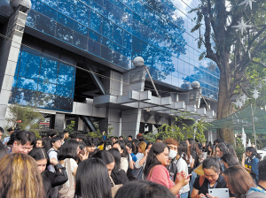 1月7日,在菲律宾南部达沃市一所学校,人们从建筑中撤离至空旷地区。 新华社发