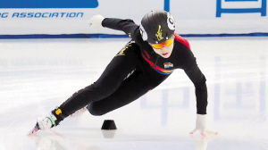 选手在进行比赛。 本报讯(记者 张堃雷)1月8日,“冰超”·2025—2026赛季全国短道速滑青少年锦标赛在黑龙江省冰上训练中心综合馆开赛,吸引了230余名青少年短道速滑小将参加。