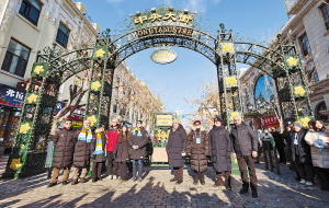 嘉宾们在百年老街中央大街合影。