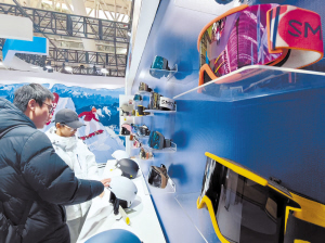 顶级冰雪运动装备亮相冰博会,吸引了众多滑雪爱好者。 杨晓冬 本报记者 王东