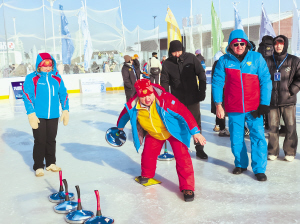 外国运动员在比赛中。 本报讯(记者 张堃雷文/摄)1月15日,中国—上海合作组织冰雪体育示范区冰盘精英赛暨“哈尔滨冰雪大世界杯”首届全国冰盘邀请赛,在冰雪大世界园区开幕。赛事吸引了俄罗斯、蒙古国、巴基斯坦、沙特阿拉伯等国家和地区的11支队伍、超400人参赛。他们将经过6轮18场的高水平比赛,角逐最终冠军。