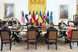 2025年8月18日下午2时许,美国总统特朗普、乌克兰总统泽连斯基和多名欧洲领导人在美国白宫举行多方会晤。新华社发 丹麦外交大臣拉斯穆森和格陵兰岛自治政府外交部长莫茨费尔特14日到访白宫,同美国副总统万斯和国务卿鲁比奥举行会晤。拉斯穆森在会晤后强调,丹麦和美国之间就格陵兰岛问题存在“根本性分歧”。当天,美国总统特朗普重申美国需要得到格陵兰岛,而多个欧洲国家则宣布将“增兵”格陵兰岛开展演训活动。