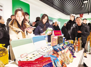 年货大集上特色产品琳琅满目。 本报讯(董芮菡 记者 王东文/摄)1月16日,三九最后一天,尚志市龙王庙产业运营中心内暖意融融、年味十足,龙王庙迎新春年货大集暨南北好物推介会启幕。来自天南海北的政企代表与乡亲们欢聚一堂,集中展示乡村振兴丰硕成果的同时,搭建起高效畅通的产销对接桥梁,让产自龙江、冰城的优质农产品与南方特色好物跨越山海、双向奔赴。