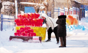 本届文化节以“燃情冰雪·嗨翻乡村”为核心主题,将冰雪艺术与乡土风情深度融合,在震天的锣鼓与欢快的秧歌表演中拉开序幕。火炬村雪雕一条街瞬间变成欢乐的海洋,热气腾腾的“长街宴”同步开席,村民赵福环在街边支起大锅,一盘盘冒着热气的饺子在人们手中传递,烤肉串、烀地瓜、冰糖葫芦……香气沿着千米长街飘散,乡亲们与游客欢聚一堂,共享舌尖上的乡村美味。饱了口福,大家结伴漫步雪雕一条街,细细品味每件作品的精巧构思与深刻寓意。
