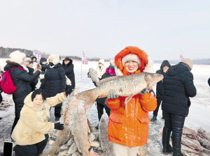 现场,金史学者王永年向市民游客讲起了阿城冬捕的千年历史,大家听得津津有味。从主城区赶来的刘女士拎着一条刚捕捞上来的大鱼告诉记者:“孩子以前只是在课本上了解过冬捕,今天带他来现场看,又听了专家讲解的历史故事,收获真不小。”李彦东说:“通过冬捕活动,我们打造沉浸式文化消费新场景,让大家在感受丰收喜悦的同时,也了解八一水库鱼的品质。”