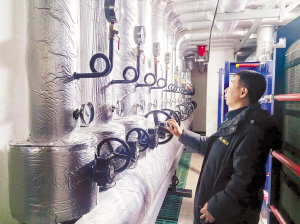 工作人员查看换热站运行参数。 ■本报记者 刘述波文/摄