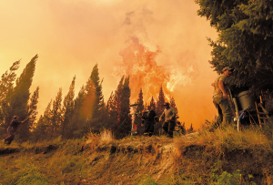 图为消防人员在阿根廷南部丘布特省埃普延市的火灾现场工作。新华社发