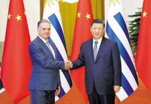 奥尔西表示,中国在习近平主席领导下取得伟大成就,令人钦佩,期待“十五五”规划为世界带来更大机遇。今天正值乌中建交38周年,两国全面战略伙伴关系处于历史最好时期。中国是乌拉圭的重要合作伙伴,为乌经济社会发展提供无私帮助。发展对华关系已成为乌拉圭国策,得到各党派和社会各界一致支持。乌方坚定支持一个中国原则,支持“一国两制”方针。乌方期待同中方深化全面战略伙伴关系,将双边合作提升到更高水平。双方要加强发展战略对接,在贸易、投资、科技、减贫、绿色经济、数字经济等领域深化合作,(下转第五版)