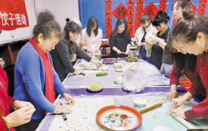 社区居民动手包饺子。 本报讯(刘云聪 记者 王东)为传承优秀传统文化,丰富居民精神文化生活,增进邻里情谊,2月2日,双城区承恩街道金谷社区新时代文明实践站精心组织“包饺子、秧歌舞、写春联”新春系列活动,辖区居民欢聚一堂,在欢声笑语中感受年味儿与社区温暖。