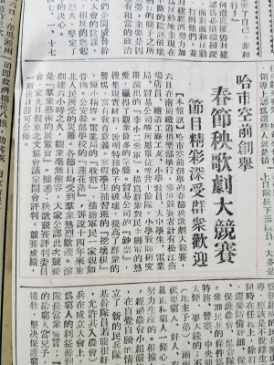 2月14日(正月二十四),哈尔滨市春季新秧歌运动总结大会在大光明电影院举行,松哈大中学生寒假补习班、小学教师研究所、电报电话局、东北贸易公司等表现突出的队伍分获甲、乙、丙等奖及纪念奖。新秧歌演出扎根群众、贴近生活,实现地方化、群众化,受到广泛欢迎。与此同时,各戏剧表演团体积极改造旧剧、赶排新剧,《红娘子》等剧目场场爆满,以艺术凝聚人心、鼓舞斗志,为解放后的第一个春节注入了昂扬向上的精神力量。