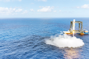 2月11日,长征十号运载火箭一级箭体按程序受控安全溅落于预定海域。 新华社发 新华社海南文昌2月11日电 我国于2月11日在文昌航天发射场,成功组织实施长征十号运载火箭系统低空演示验证与梦舟载人飞船系统最大动压逃逸飞行试验。
