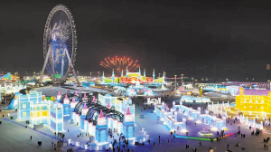 园区内灯光璀璨。 冰雪大世界供图 本报讯(记者 王丹 李木双)瑞雪映冰雕,欢歌迎马年。2026年春节将至,哈尔滨冰雪大世界重磅推出“新春冰雪盛宴”,将以春节主题冰雕、潮流演艺、光影秀、互动送福等多元体验,携手总台春晚哈尔滨分会场,诚邀八方游客共赴冰雪之约,沉浸式解锁地道中国年。