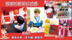 在孩子们的画笔下,春节是热烈的红色、灵动的金色,更是天马行空的想象。继红小学滕浩宇用红红火火的“福”字印画,搭配视频中清脆的祝福“瑞雪兆丰年 祝福送心间”,传递新年美好祝愿。