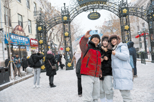 大年初一,哈尔滨迎来新春瑞雪,百年中央大街上游人如织。洁白的雪花在各具特色的建筑周围飞舞,市民游客赏雪景、品美食、逛老街,沉浸式感受哈尔滨的年味。本报记者 韩伟摄影报道