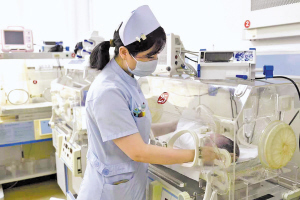 医护人员在照料新生儿。 ■本报记者 刘鹏 徐日明文/摄
