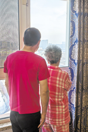 韩东和母亲站在窗前向外眺望。 ■本报记者 张鸣霄文/摄