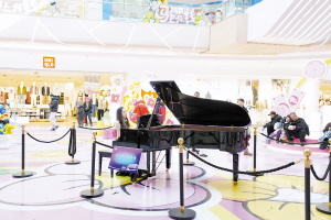 哈尔滨交响乐团钢琴演奏家演出现场。 本报讯(记者 于秋莹文/摄)2月23日,哈尔滨交响乐团“高雅艺术进商圈”系列公益演出走进松北万象汇,青年钢琴演奏家刘子桐倾情献艺,用一场融汇经典与温情的视听盛宴,为即将返程游客暖心送行,为冰城春节假期画上圆满句号。