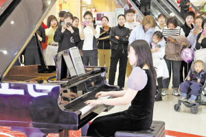 红博会展演出现场。 本报讯(记者 封娇文/摄)2月25日傍晚,红博会展商场里琴声悠扬。许多市民游客循声而去,钢琴键上跳动的音符将柴可夫斯基《十月》的深沉与温柔送至往来人群的耳畔。由哈尔滨演艺影视集团指导、哈尔滨歌剧院演绎推出的冰雪季专场演出,在红博会展的多个演出点位开启。