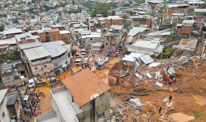 暴雨后山体滑坡损毁的建筑物。新华社发 新华社里约热内卢2月24日电 巴西东南部米纳斯吉拉斯州军事消防部门24日发布最新通报确认,暴雨造成该地区死亡人数升至30人,另有39人失踪。