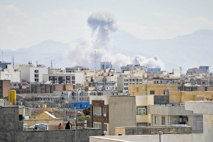 3月1日在伊朗首都德黑兰拍摄的烟柱。