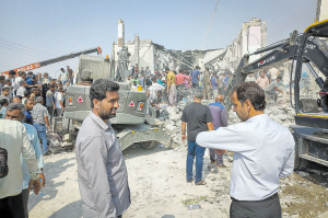 2月28日,救援人员和当地居民聚集在伊朗米纳卜市一所被袭击的小学。此次袭击已造成148人死亡,另有95人受伤。