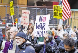 民众在美国纽约举行集会游行,抗议美国和以色列军事打击伊朗。新华社发 伊朗方面3月1日证实,伊朗最高领袖哈梅内伊在美国和以色列对伊朗的袭击中遇害。美以对哈梅内伊的袭击发生在2月28日早些时候。