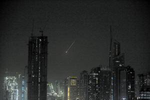 2月28日在阿联酋迪拜拍摄的夜空中的火光。