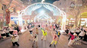 哈师大学子晚会上载歌载舞。视频截图 本报讯(赵鹤 记者 王铁军)3月3日晚,中央广播电视总台2026年元宵晚会圆满落幕。哈尔滨师范大学音乐学院97名舞蹈专业学子闪耀亮相,以饱满热情与扎实功底,将东北秧歌的灵动韵律与青春风采带上元宵晚会舞台,与文艺表演者共同演绎民俗与大众文化交融的喜庆篇章。