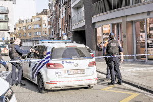 3月9日,在比利时东部城市列日,警察在发生爆炸的犹太教堂附近区域设立警戒线。 新华社发