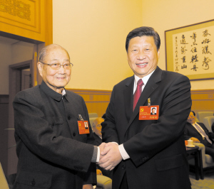 图①:2012年11月14日,在党的十八大闭幕前,习近平同志同宋平同志在一起。新华社发
