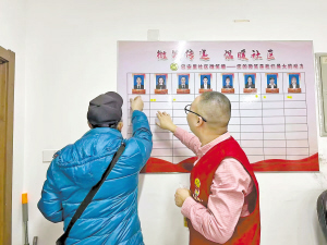 居民为热心服务的网格员贴上满意贴纸。 本报讯(吴昌林 记者 刘姝媛文/摄)一面微笑墙,满满正能量。近日,香坊区通乡街道巴安里社区创新基层治理举措,精心打造的微笑传递墙正式启用。墙面摒弃华丽装饰,仅张贴着一张张暖心的微笑贴纸,以简约务实的方式,承载着居民对社区服务的认可,传递着邻里温情与基层服务温度,成为辖区内一道亮丽且有温度的风景线,也成为社区拉近与群众距离、践行服务初心的重要载体。