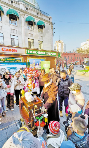 摇动曲柄,铃铛清脆,鸟哨悠扬,七彩泡泡漫天飞舞……从中央大街出发,贝多将到斯大林公园、中华巴洛克历史文化街区等景点,开启在哈尔滨“一个人的舞台表演”。他说,在这座“音乐之城”,不仅感受到浓厚的艺术氛围,也找到了知音和回响。
