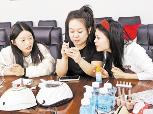 “笔刷要轻、胶要薄,画线时手一定要稳。”培训现场,教授美甲贴片制作的老师穿梭在学员间,从甲片修形、底色涂抹,到绘制图案、封层照干,进行手把手指导。“我之前在家带孩子,总想找点既能顾家又能赚钱的事儿。这个培训时间灵活,学成后还能直接把做好的甲片交给工作室回收,马上就见收益,心里特别踏实。”参加培训的刘女士笑着说。