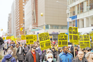 3月7日,人们在美国纽约参加集会游行,抗议美国和以色列对伊朗发动军事打击。新华社发 美国联合以色列对伊朗发动军事打击以来,特朗普政府虽然在最初的制度性压力测试、即3月4日和5日国会两院战争权力决议投票中勉强过关,但其国内政治基础正遭受来自多个方向的冲击。
