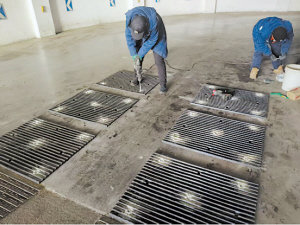 地下车库安装坡道防滑垫。 ■本报记者 刘述波文/摄