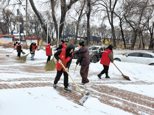 在志愿者的带动下,沿途商户也纷纷拿起工具,主动落实“门前三包”责任,清扫门前积雪。一时间,“志愿者带头、全民参与”的清冰雪场面在平房区大街小巷铺开,一条条“平安路”在众人接力下逐渐显现。经过两个多小时的连续奋战,全区重点路段、小区庭院、公共区域的积雪积冰得到全面清理,道路通行条件显著改善。