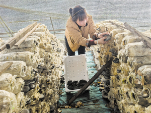 村民采摘平菇。 本报讯(伊飞帆 记者 康福柱文/摄)初春时节,乍暖还寒。在五常市红旗满族乡后兰旗村的温室大棚内,一派暖意融融、生机勃勃的丰收景象。眼下,这里的平菇迎来了采摘旺季,一朵朵鲜嫩的平菇不仅丰富了市民的“菜篮子”,也撑起了乡亲们的“致富伞”。