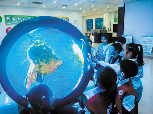 同学们参观气象科普馆。 本报讯(刘衍辰 王继梅 记者 节永志)在第66个世界气象日到来之际,17日,50余名小学生来到市气象局,参加“探秘气象·零距离”科普基地开放日活动,在沉浸式体验中感悟气象科技的魅力。
